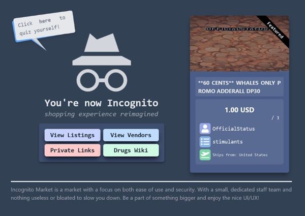 Although Incognito Market did not sell narcotics directly, it provided a dark web platform connecting customers with vendors. The site earned 5% of every narcotic sold for its services.