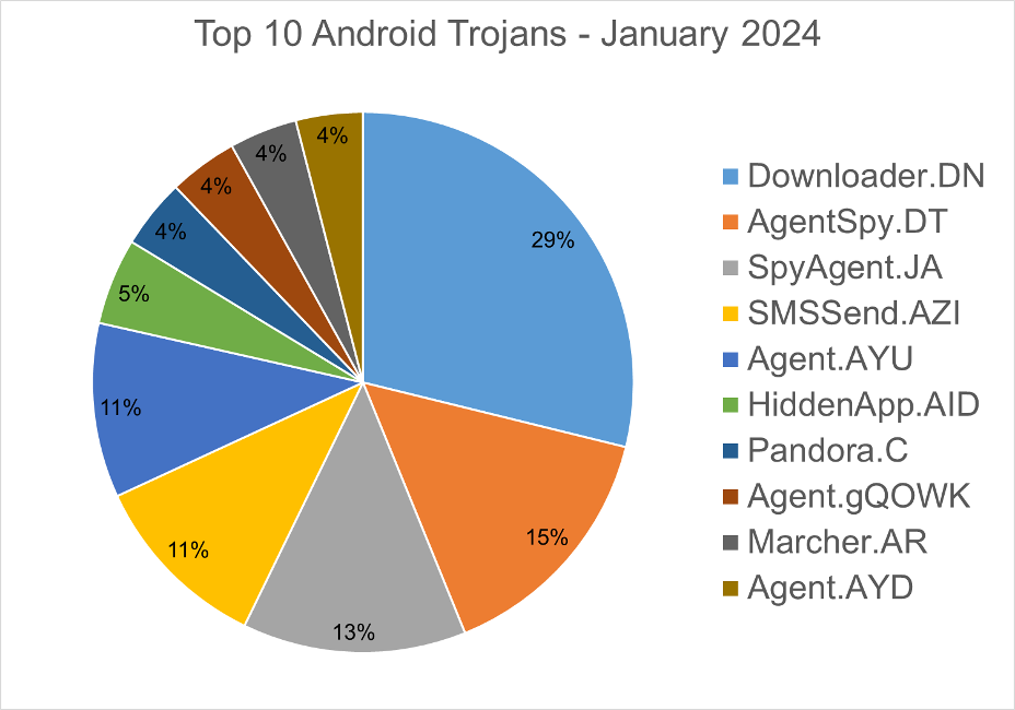 Below are the top 10 trojans targeting Android we have seen in our telemetry during December 2024.