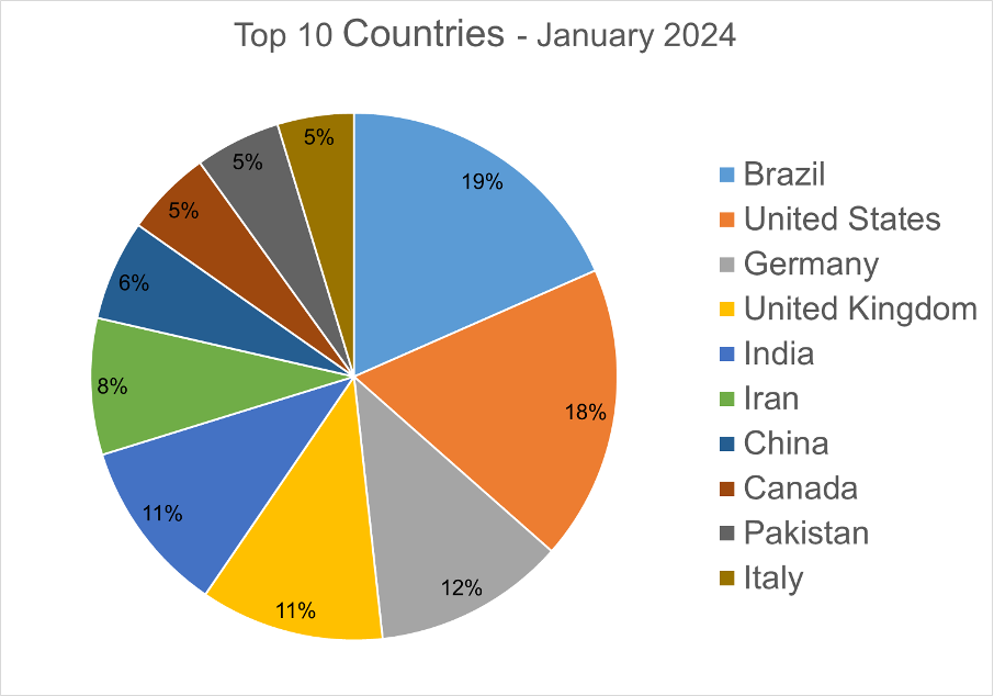 In our report, we focus solely on destination countries, not source countries. While we have access to this data, its relevance is limited, given that the majority of attacks are linked to virtual workloads running in the cloud, designed to conceal the identity of the actual attackers.
