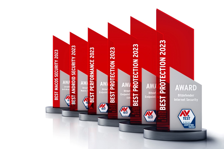 Following a long series of rigorous independent tests conducted in 2023 by AV-TEST that compared top cybersecurity products, Bitdefender won the prestigious AV-TEST Award for Best Protection and for Best Performance for corporate users and three additional awards for home users.