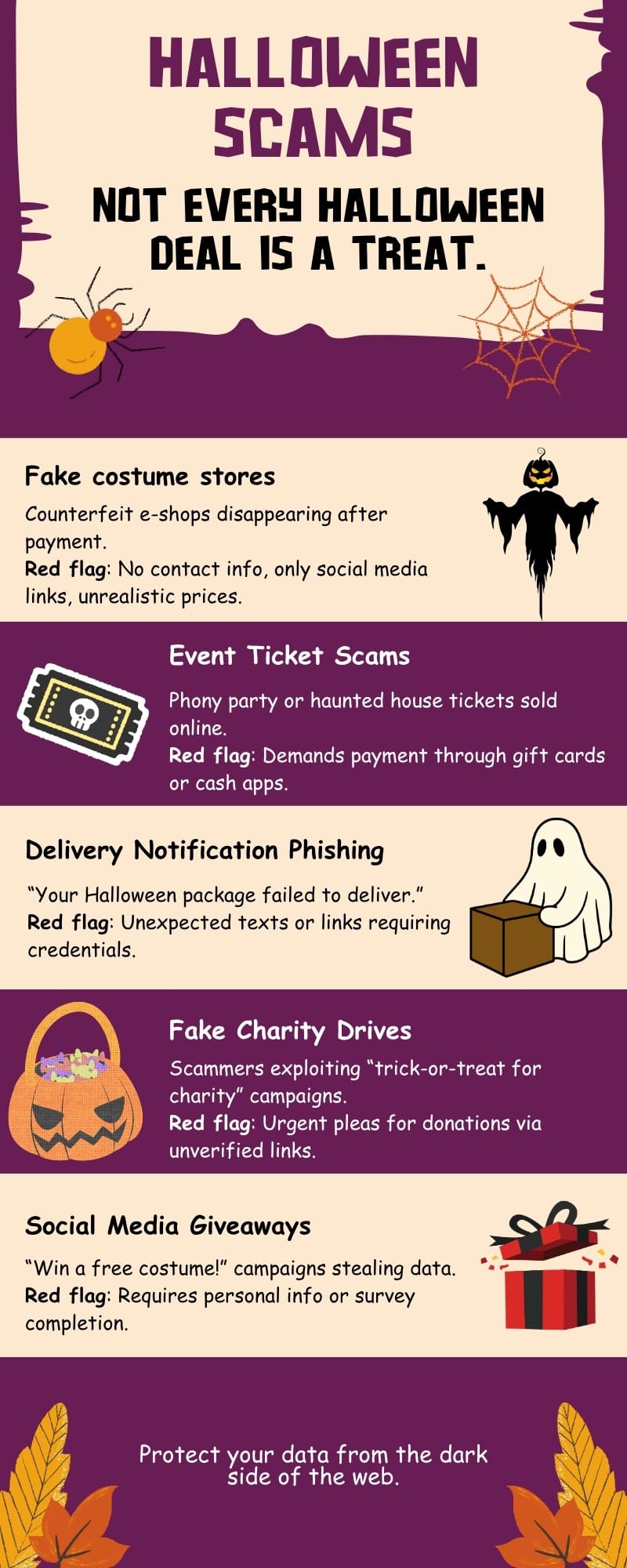 “Win a free costume!” or “Enter our Halloween giveaway!” posts might promise treats but deliver tricks. Many link to phishing surveys or malware downloads.