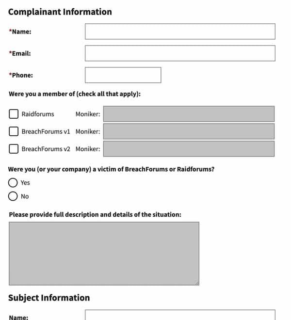 Rather than the usual messageboard where cybercriminals traded their wares, the site not points to a specialist subdomain of the website of the Internet Complaint Center (IC3), inviting victims and members of the hacking forums to leave information that could assist in future crackdowns.