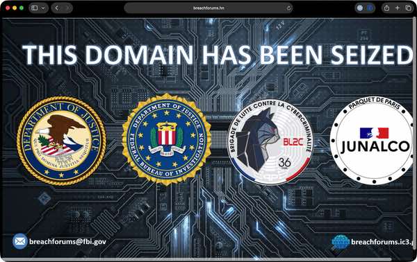 Law enforcement agencies in the United States and France have seized control of domains linked to the notorious BreachForums hacking forum, commonly used for the leaking of stolen data, and the sale of hacked credentials.
