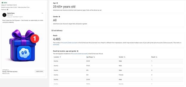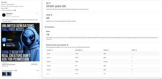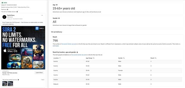 Days later, the same Meta page started promoting Sora 2, a lure clearly designed to appeal to content creators. The malicious ad directed users to sorachatgpts[.]com