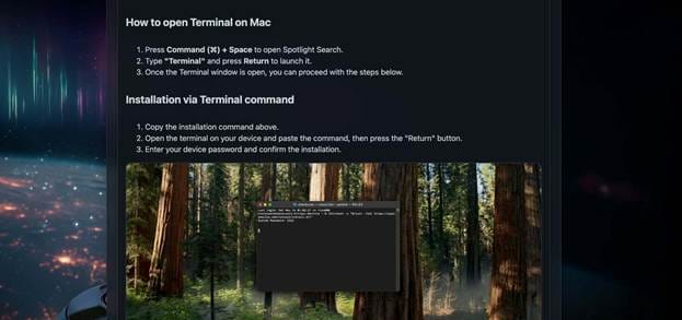 - macOS variant: used a ClickFix-style technique, urging readers to run a terminal command that decoded and fetched a second-stage MacStealer payload.