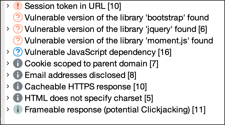 List of vulnerabilities found by the scanner does not have the above mentioned vulnerability.