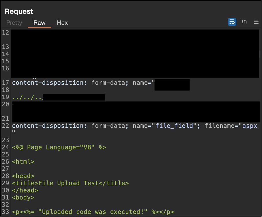 Successful upload of an ASPX file, which was not intended to be permitted.