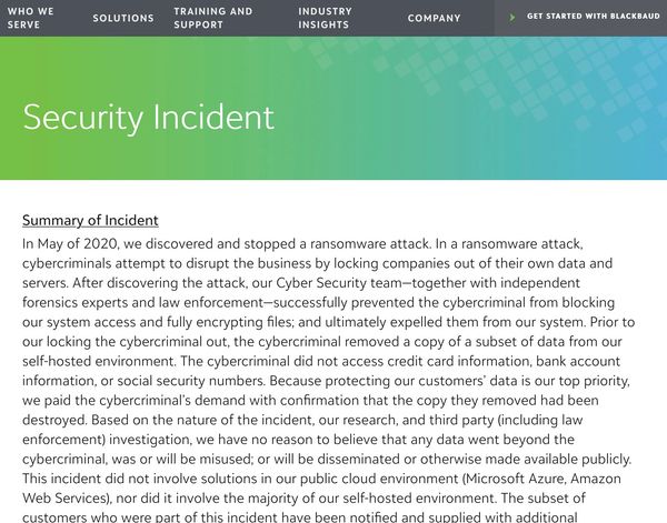 All of which was a treasure trove for the attacker, who demanded a ransom from Blackbaud or threatened to expose the stolen data. The company paid 24 Bitcoin (worth US $235,000) to the hacker, but was not able to verify if the deleted the data.