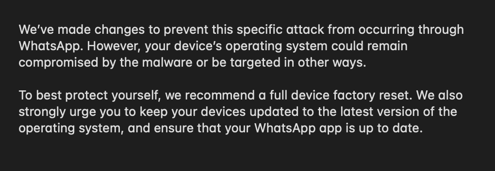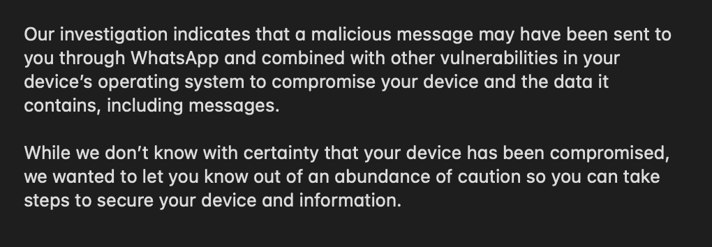 And while the WhatsApp advisory names only iOS and macOS as the affected platforms, Ó Cearbhaill says “early indications are that the WhatsApp attack is impacting both iPhone and Android users, civil society individuals among them.”