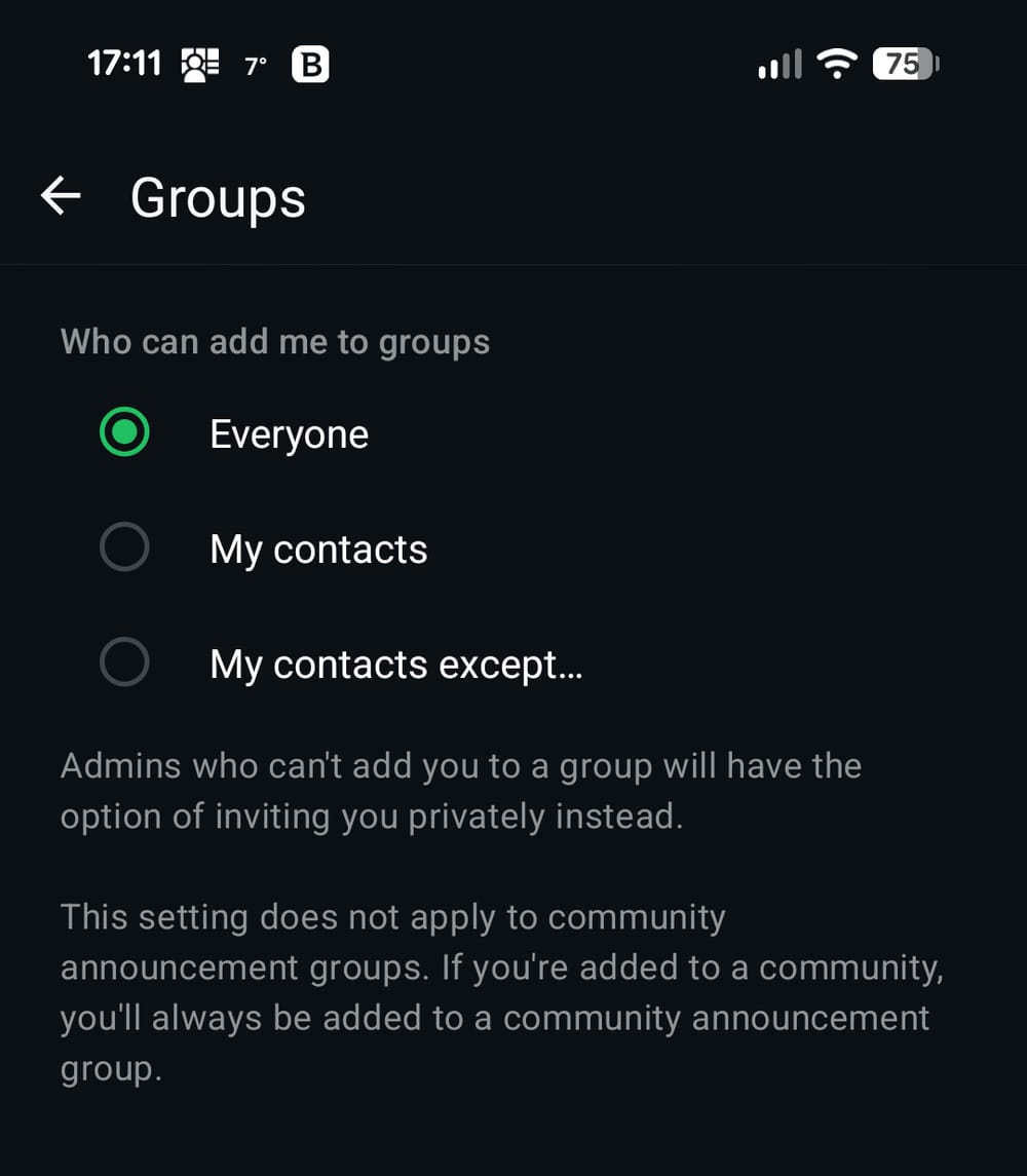 The feature that lets users decide who can add numbers to WhatsApp groups has been around since 2019, but it’s set to Everyone by default.