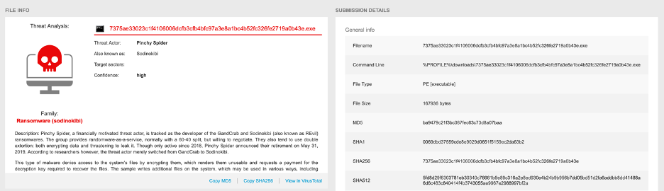 Bitdefender’s sandbox report features a lot of actionable data, like general information about the threat actor: