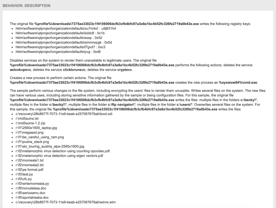 Besides improved detection, malware sandboxing is also indispensable to SOC analysts and security researchers. It can provide insights into malware intent, relevant IoCs and IoAs, common TTPs , and useful context for threat actors.