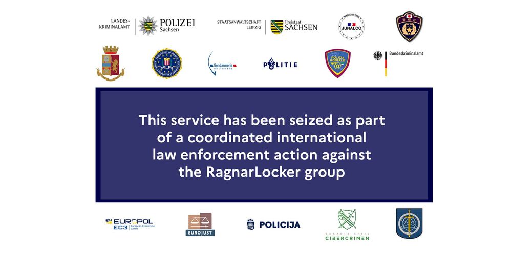 This joint action saw the seizure of the gang’s Tor negotiation and data leak sites on Thursday. The affected websites now display a message announcing their seizure as part of this international law enforcement action against the Ragnar Locker group.
