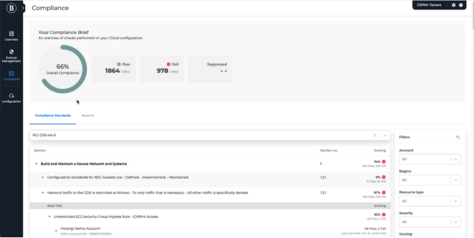 Cloud Compliance is ensured through continuous security checks of the configuration of customer public cloud resources based on security standards and regulatory compliance frameworks, such as CIS and GDPR. Currently, Bitdefender GravityZone CSPM+ supports more than 20 frameworks and regulations. It includes frameworks like CIS, PCI DSS, NIST CSF, CCM, ISO 27001, SOC2, and GDPR. Also, it includes a collection of best practices for cloud resources, ensuring secure configurations for elements such as identities, databases, and compute instances.