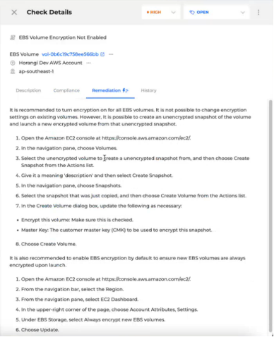 For every finding, the administrator is provided a Manual remediation which provides the administrator with step-by-step instructions on how to resolve issues with their cloud assets manually.