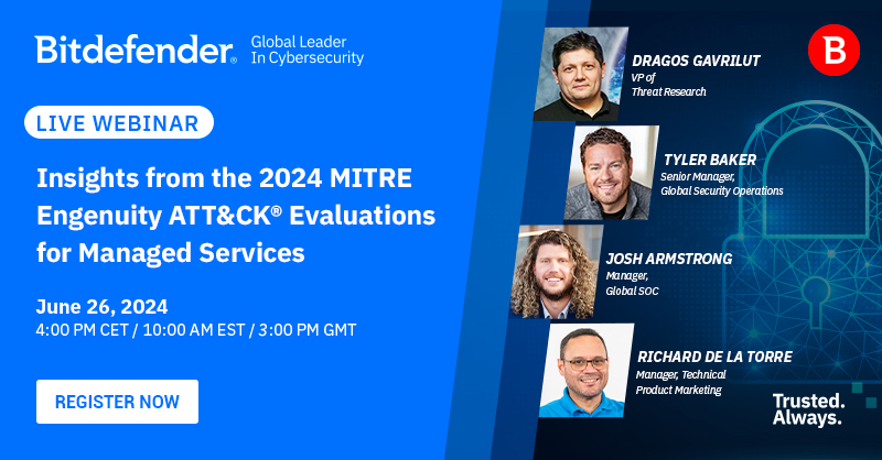 Want to learn more? Dive deeper with the experts themselves! Join our upcoming webinar featuring Bitdefender’s SOC analysts and security researchers on Wednesday, June 26th, 2024 at 10:00 am EST. They’ll be unpacking the MITRE MDR evaluations, discussing our results in detail, and answering any questions you have about our approach to MDR. This is a technical deep-dive (not a marketing event) and a chance to learn directly from the front lines of threat detection and response.