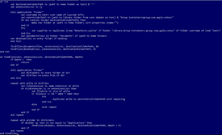 - The script is used to exfiltrate documents with specific extensions and sizes from Documents and Desktop folders, as well as the notes of the user, stored in SQLITE format at the following location: