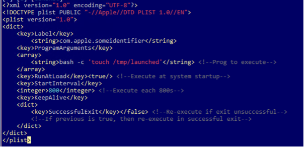 Although this embedded plist is meant to ensure persistence using LaunchAgents, the configuration does not include a field for this persistence method (only for persistence using cronjobs or inserting the application in the Dock bar), as seen in the second variant.