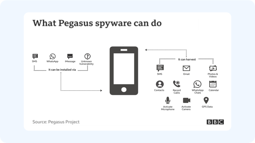 When terrorists or criminals get their hands on Pegasus, they can use it to monitor and silence key figures such as government officials, politicians, human rights activists, and journalists. These tools can also collect sensitive data, potentially compromising national security.