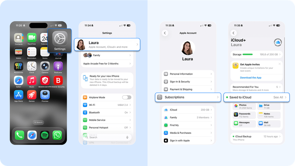 - iOS devices: Go to Settings > [your name] > iCloud > iCloud Backup or open Finder/iTunes > Preferences > Devices. Check for unfamiliar backup files, unknown timestamps, or multiple backups you didn’t initiate.