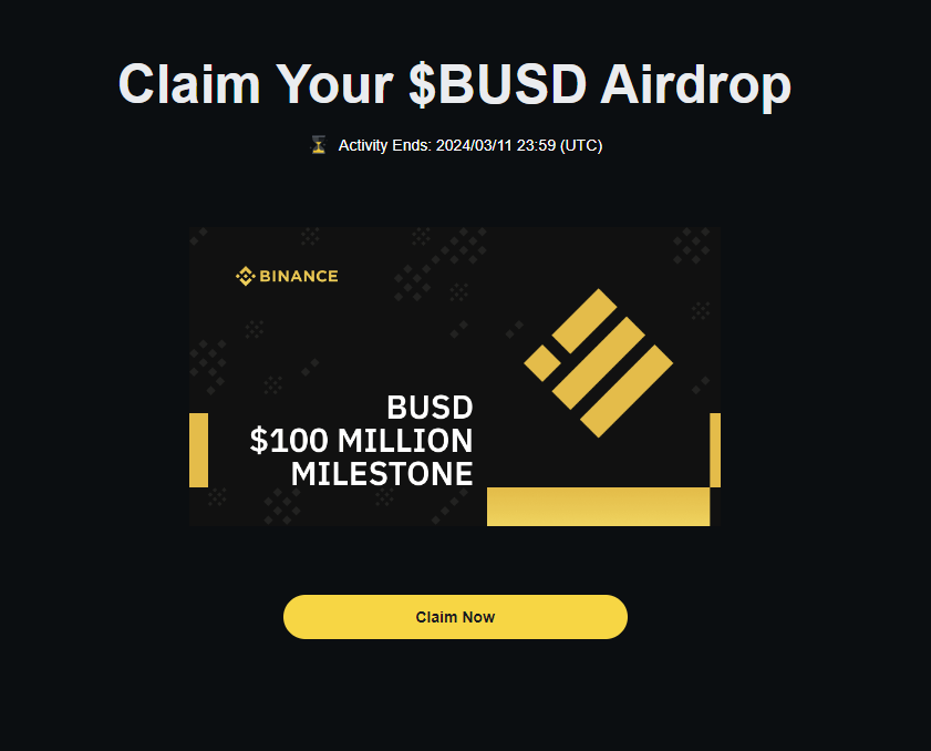 Scammers have sent emails promoting unique BUSD airdrop events benefiting existing token holders.