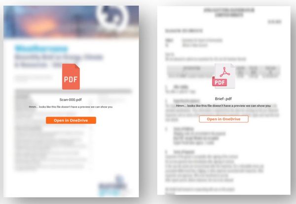 However, the PDF’s content would be blurred out – and a button would be displayed, asking the recipient to open the file in a cloud service such as OneDrive.