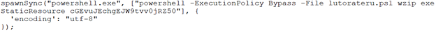 Newer versions of the malicious main.js directly execute the unzipping process, skipping the intermediary PowerShell scripts (_0x3ddef2 leads to the 7zip executable):