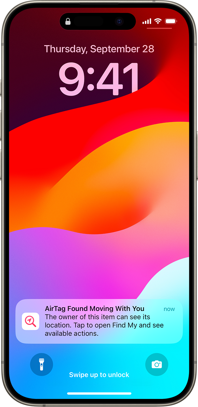 Apple devices (iPhone, iPad) are designed to detect unknown AirTags moving with you and send an alert: “AirTag Found Moving With You.”