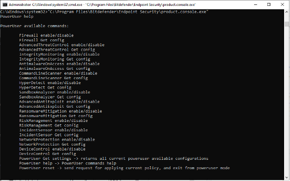 - PowerUser reset – resets all changes performed via the console by re-applying the most recent GravityZone policy.