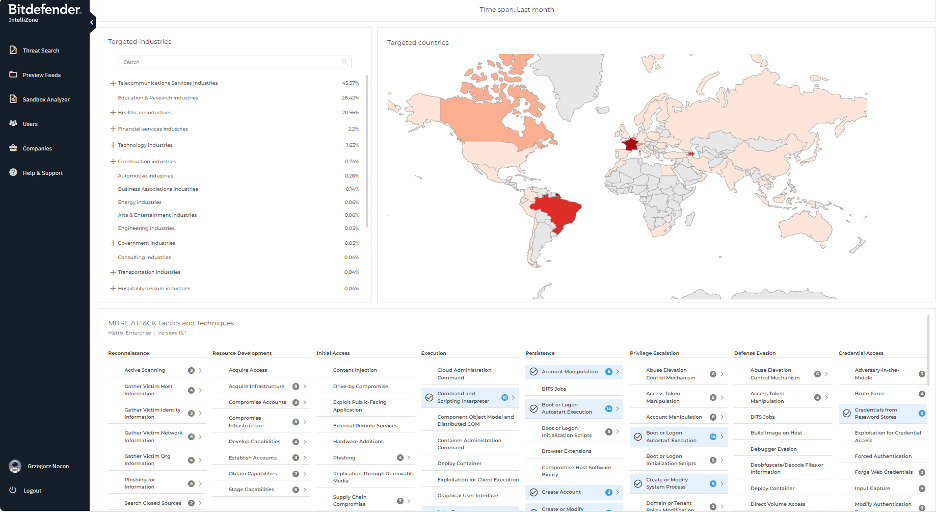 Bitdefender IntelliZone is our Threat Intelligence Portal, exposing the capabilities of our Threat Intelligence solution. It provides UX-optimized, human-readable visualizations of Threats and Indicators of Compromise (IoC). IntelliZone integrates search and navigation functionalities, offers AI-powered user support, and includes other valuable features, all optimized for security analysts.