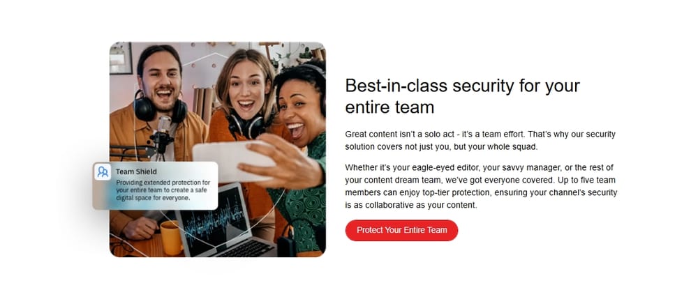 - Consider specialized security tools for creators. If you’re actively creating across YouTube, Facebook and Instagram and your brand or face is part of your livelihood, you need a tier of protection built just for creators.